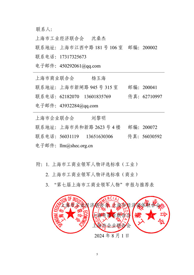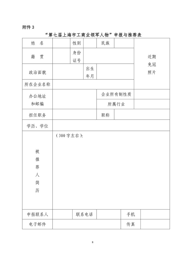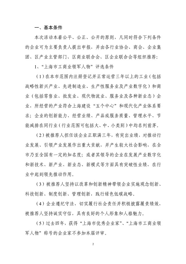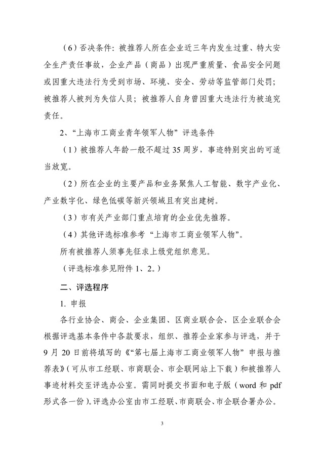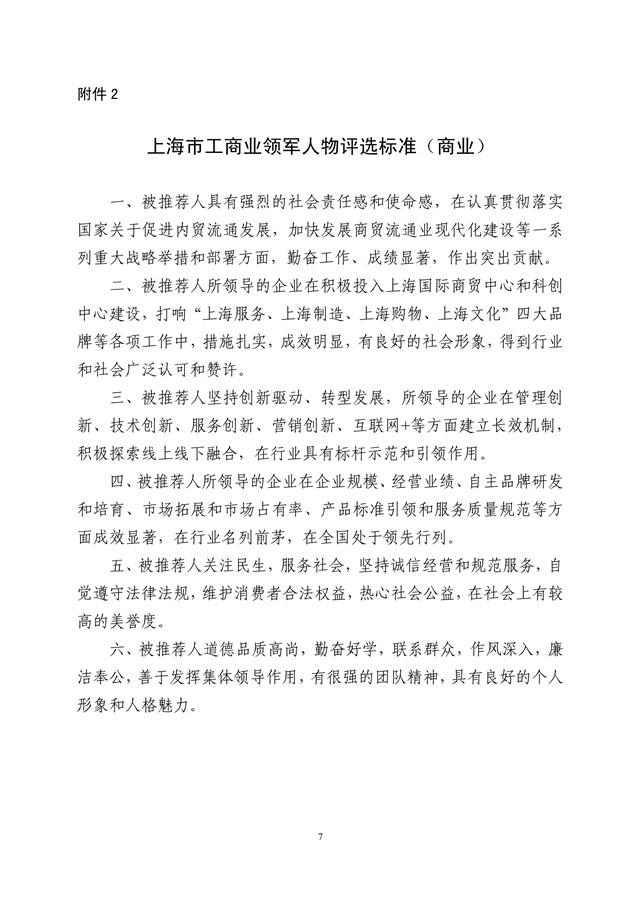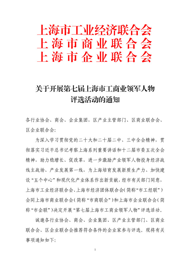 关于开展第七届上海市工商业领军人物评选活动的通知