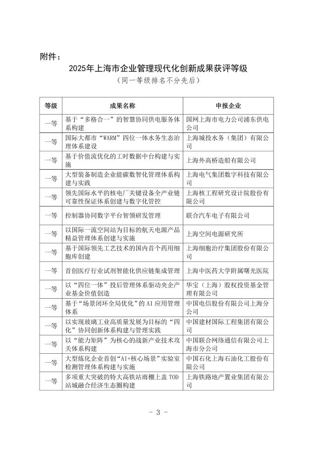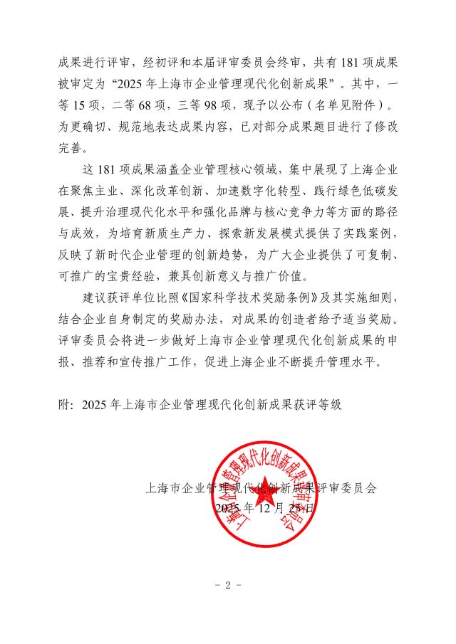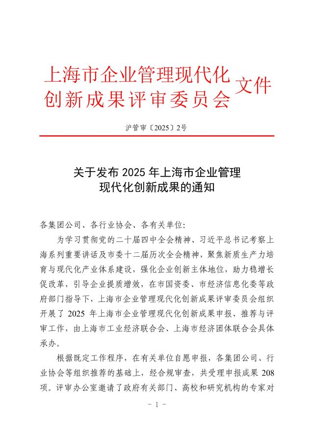 关于发布2025年上海市企业管理现代化创新成果的通知
